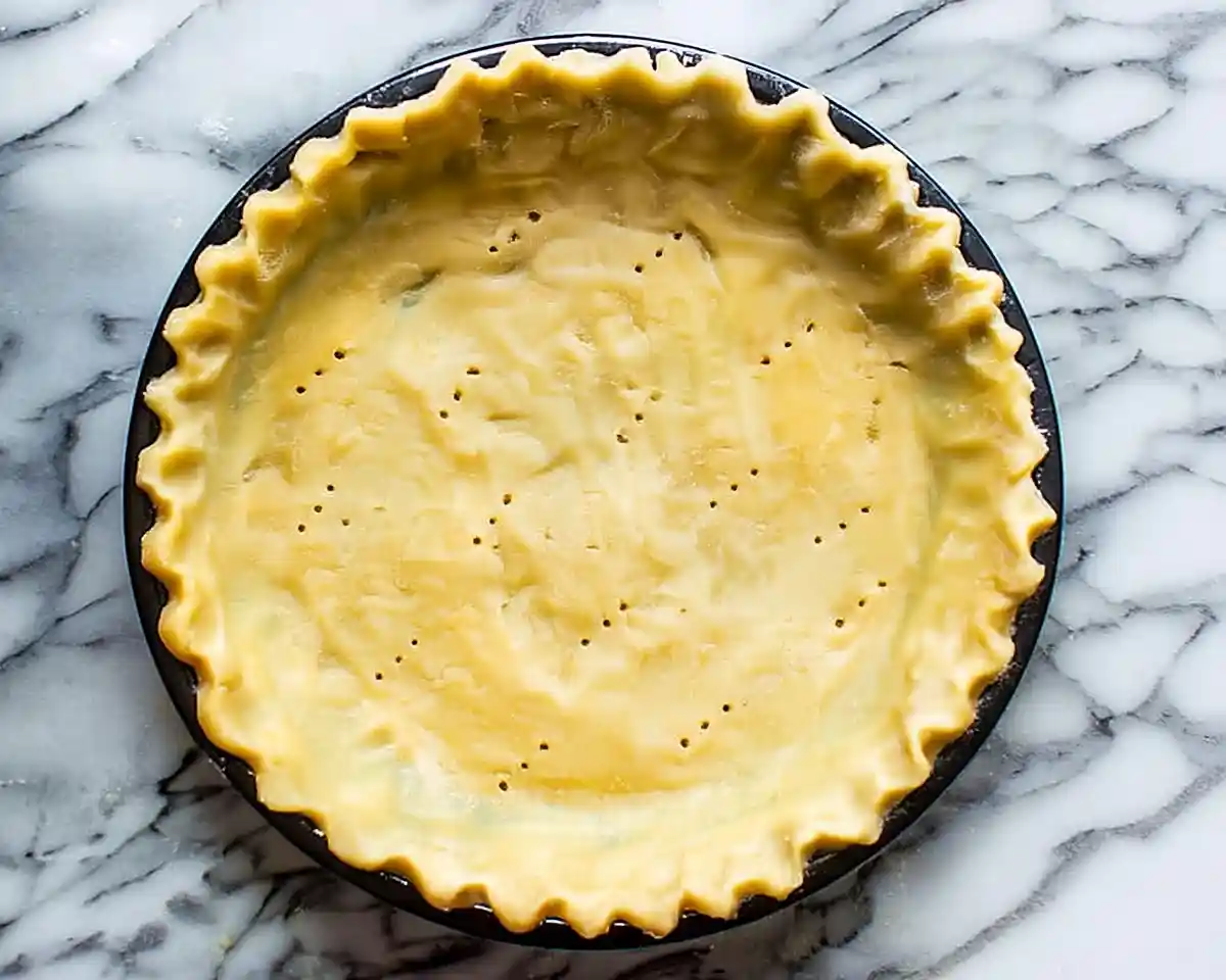 Transfer your dough to a 9-inch pie plate and use your hands to gently press it into the bottom and sides, creating an even layer about ¼-inch thick. Work from the center outward, and don’t stress about it being perfect—the slight rustic texture actually looks beautiful and holds up better than overly-fussed edges.