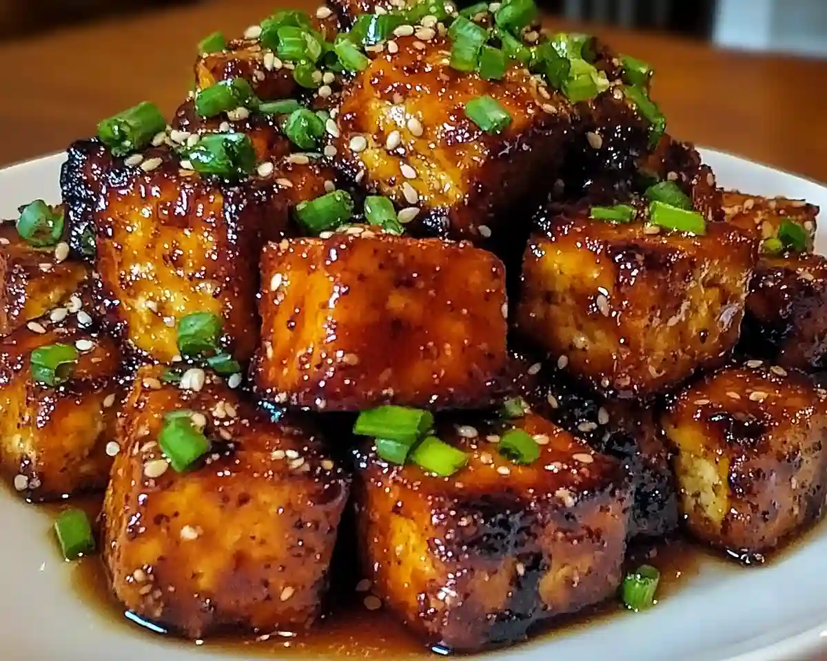 - Transfer to a serving plate and top with fresh green onions and sesame seeds for a finishing touch that adds freshness and texture. Serve immediately while everything is warm and the tofu is still crispy on the outside and tender within.