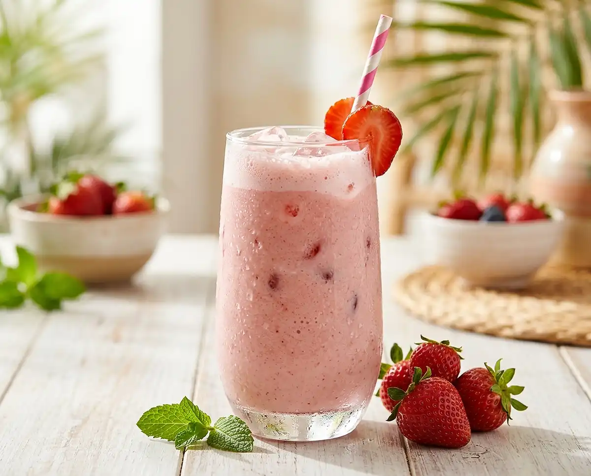 Tropical twist: Replace half the water with coconut water for natural electrolytes and a subtle tropical flavor, or add ½ cup of fresh pineapple chunks when blending the strawberries. A squeeze of fresh lime juice (about 1 tablespoon) also brightens the flavor and adds a tangy contrast to the sweet berries.