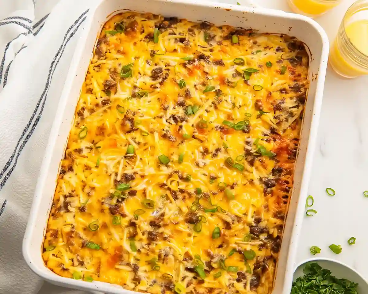 You can absolutely make this easy breakfast casserole gluten-free and dairy-free by using dairy-free cheddar and any plant-based milk—oat, almond, or unsweetened cashew all work beautifully. The casserole will bake the same way, though dairy-free cheese may brown slightly differently on top.