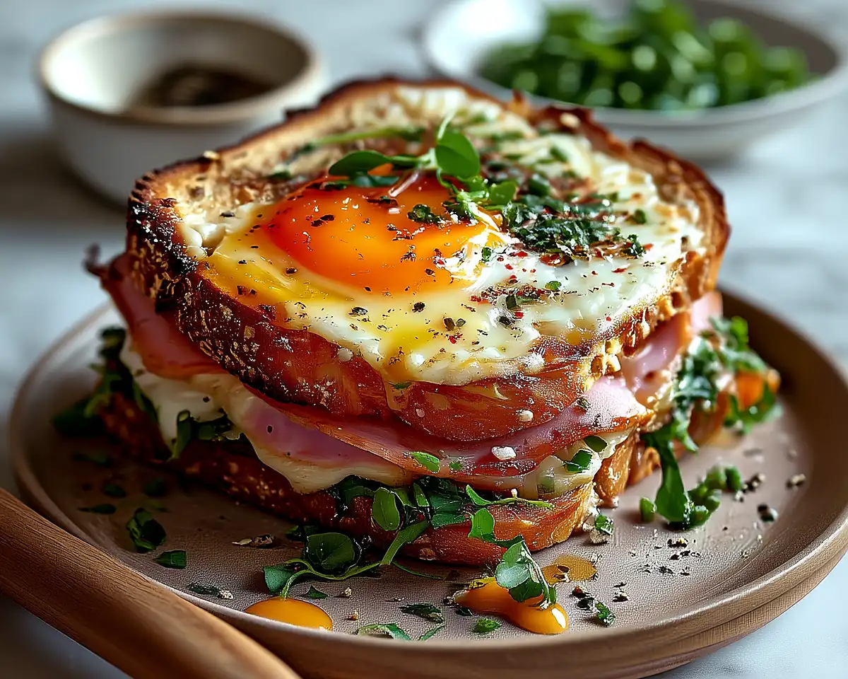 Kid-Friendly Version Tone down the Dijon mustard in the béchamel to just 1 tablespoon for younger palates who might find the traditional version too tangy. You can also skip the runny egg on top and serve it as a regular Croque Monsieur instead—still delicious and way less messy for little ones learning cooking skills at the kitchen recipes table.