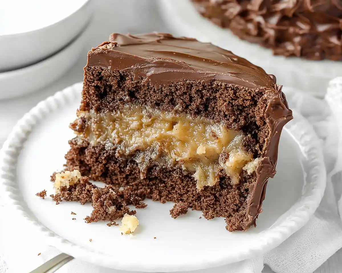 This Gluten Free German Chocolate Cake features tender chocolate layers, coconut pecan filling, and rich frosting—perfect for celebrations and easier than you’d think!