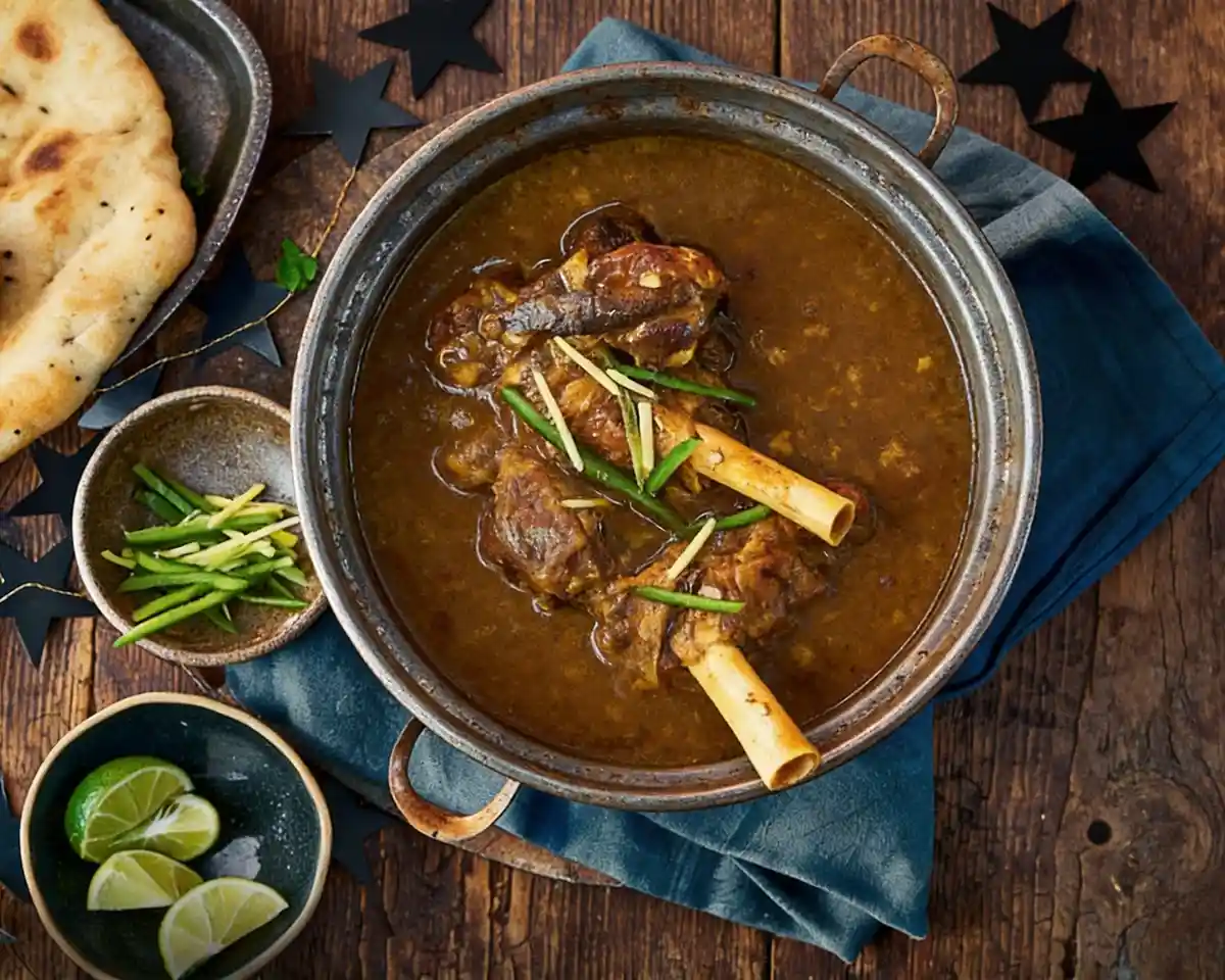 Rich gluten-free lamb shank nihari with aromatic spices and melt-in-your-mouth meat. This Pakistani slow-cooked stew is naturally gluten-free and perfect for cozy family dinners.
