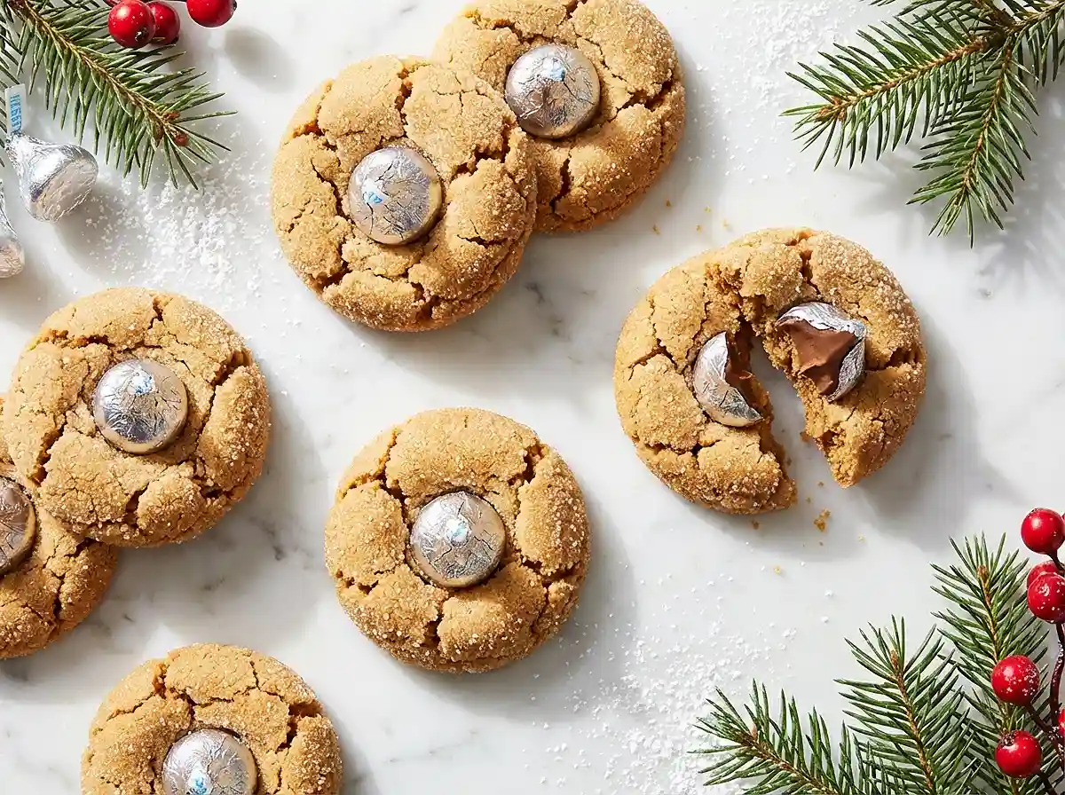 Step 4: Bake for 8 to 10 minutes until the edges look set and lightly golden—the centers will still appear slightly soft, and that’s exactly what you want. As soon as you remove the pan from the oven, gently press a Hershey’s Kiss into the center of each cookie, working quickly while they’re still warm. The cookies will crack around the edges in the most gorgeous way, creating that classic peanut butter cookies appearance we all love.
