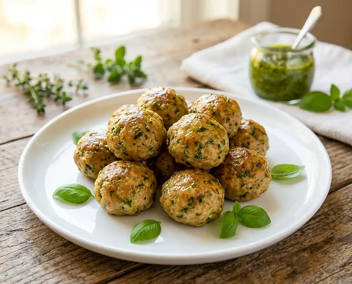 Meatballs are dry: Ground turkey is lean, so this can happen if overbaked. Check temperature at 22 minutes and remove as soon as they reach 165°F. Also ensure you’re using the full ½ cup of pesto—the oil content is crucial for moisture.