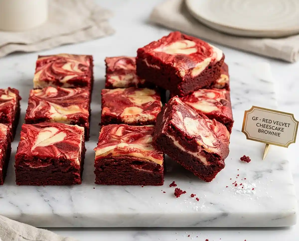 These gluten-free red velvet cheesecake brownies make a stunning addition to any dessert spread. The dramatic red and white swirls photograph beautifully and catch every eye at potlucks and parties.