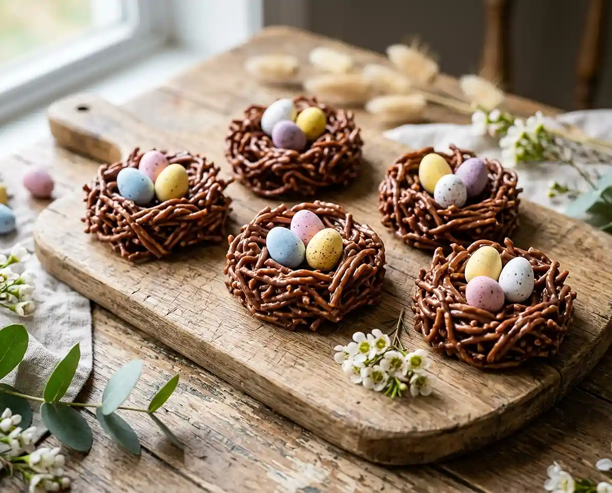 Last Easter, my daughter asked if we could make “those bird nest cookies” she’d seen at a friend’s house. Well… I’ll be honest—my first batch turned into a sticky, impossible-to-move mess because I didn’t wait for the chocolate to cool.