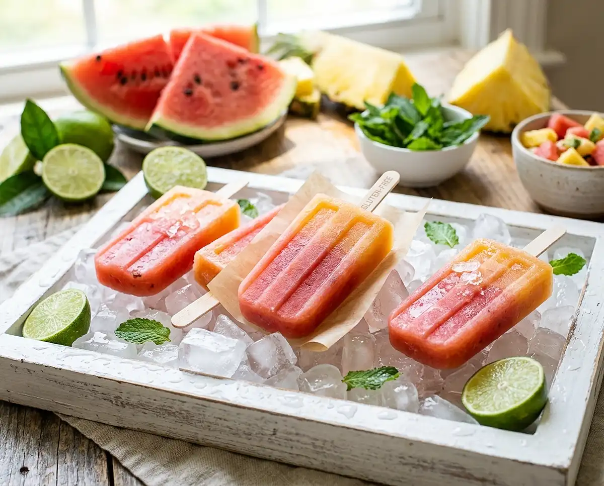 Last summer, my daughter’s swim team had a post-practice party and I volunteered to bring frozen treats without thinking about the August heat. I rushed home with a bag of pineapple and watermelon from the farmers market, threw everything in the blender with coconut water, and prayed the popsicles would freeze in time. Four hours later, I pulled out these gluten-free tropical fruit popsicles that tasted like vacation in frozen form—and they disappeared faster than any store-bought version I’d ever served.