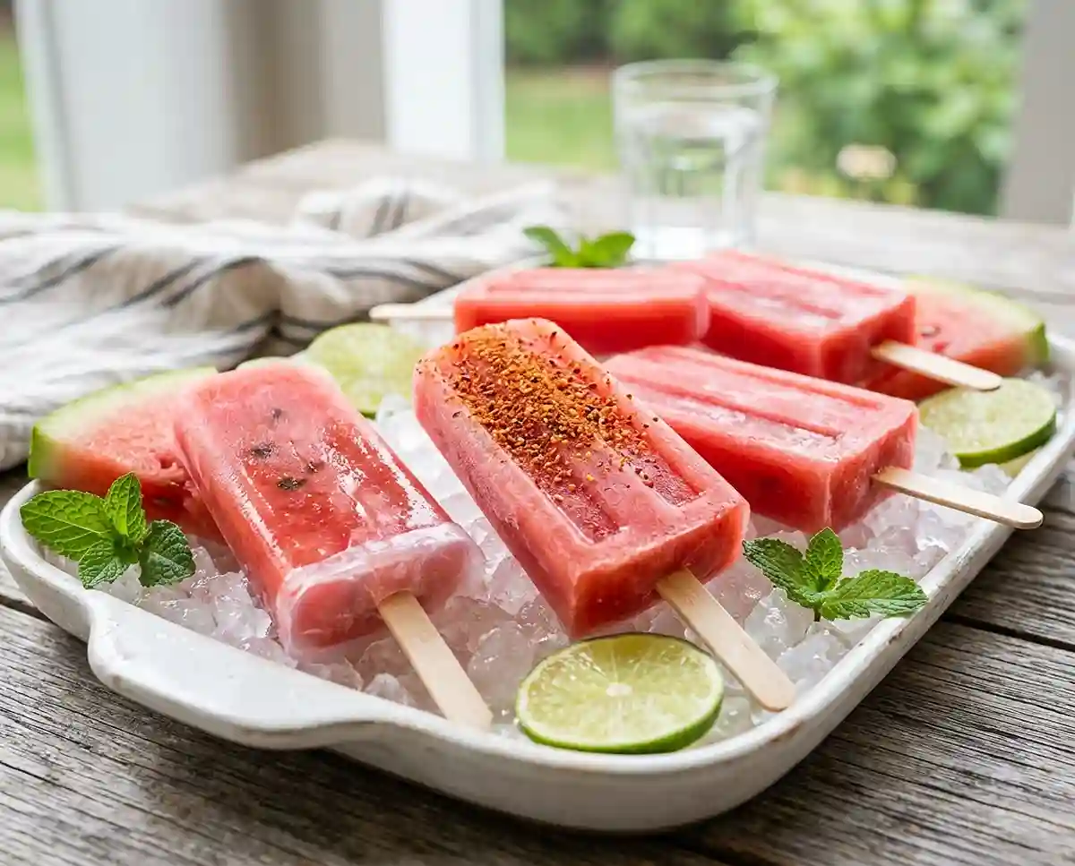 Try setting up a “popsicle bar” at your next gathering with plain watermelon popsicles alongside bowls of Tajín, chamoy sauce, fresh lime wedges, and flaky sea salt so guests can customize their own flavor combinations. It’s interactive, fun for all ages, and creates a memorable experience that’s way more interesting than just handing out identical frozen treats.